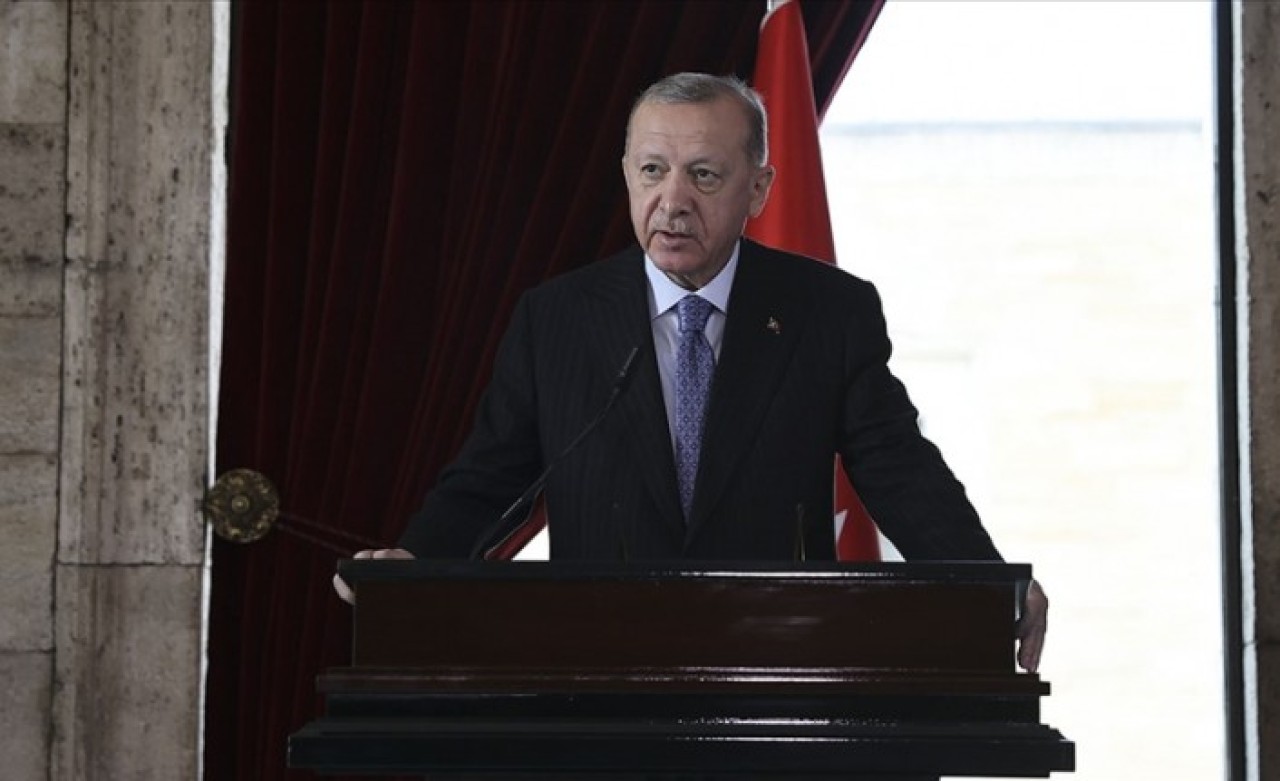 Erdoğan, kırmızı beyaz karanfillerden oluşan ay yıldızlı çelengi, Atatürk'ün mozolesine bıraktı. Atatürk'ün 83 yıl önce vefat ettiği saat olan 09.05'te saygı duruşunda bulunuldu ve ardından İstiklal Marşı okundu.