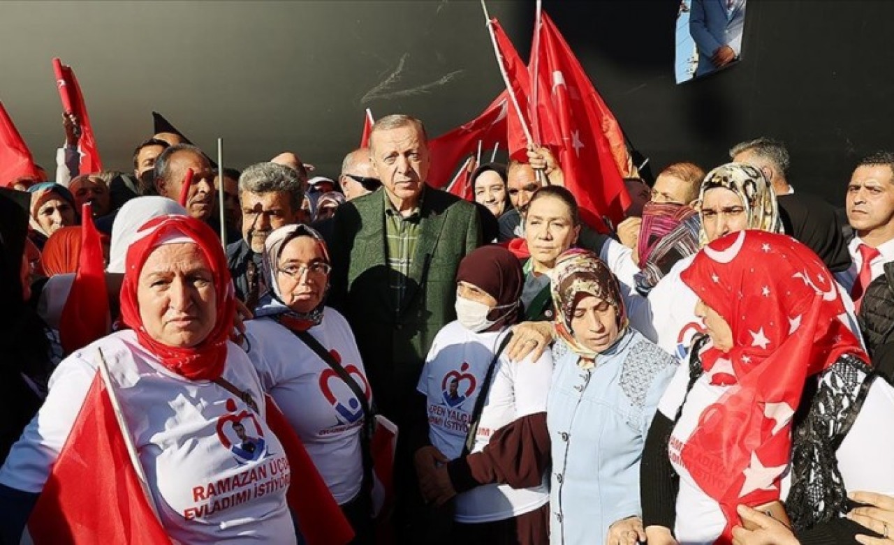 Cumhurbaşkanı Erdoğan, dağa kaçırılan çocukları için HDP il binası önünde oturma eylemi yapan anneleri dinledi ve bir süre sohbet etti.