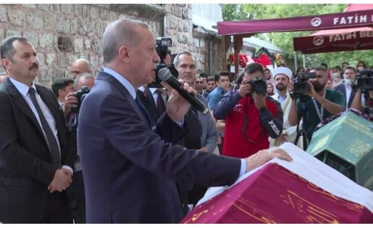 ''Bir şeyi unuttum'' diyerek bir kez daha mikrofonu elien alan Cumhurbaşkanı Erdoğan, "Biz Fethiye ablamızın çok böreklerini yedik. Çok güzel börek yapardı. Yapınca bu Tayyip kardeşine de gönderirdi. O da bizlere hakkını helal etsin.'' dedi.