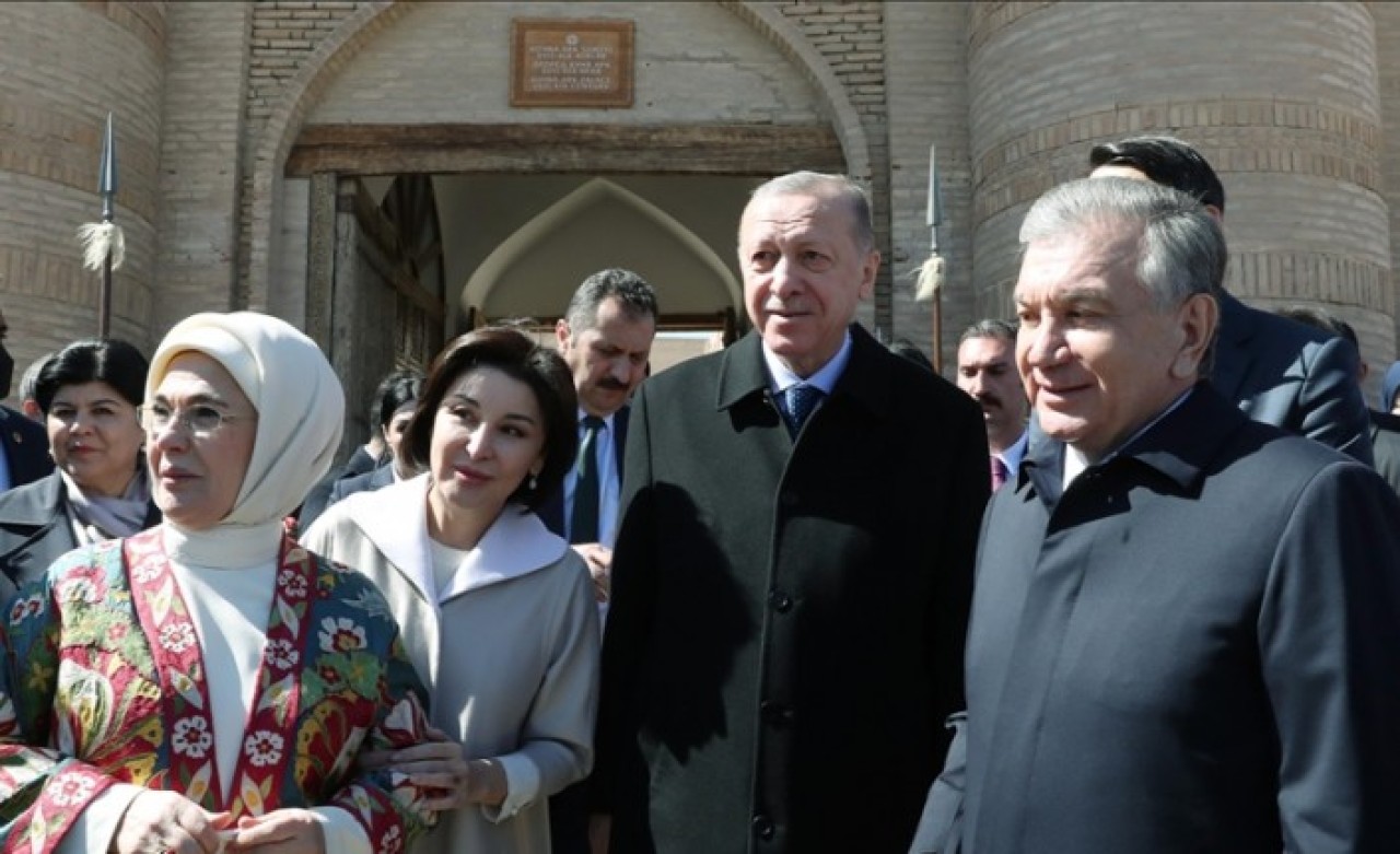 Buradan kara yoluyla tarihi şehre hareket eden Erdoğan'a eşi Emine Erdoğan, Özbekistan Cumhurbaşkanı Şevket Mirziyoyev ile eşi Ziroat Mirziyoyeva eşlik etti.