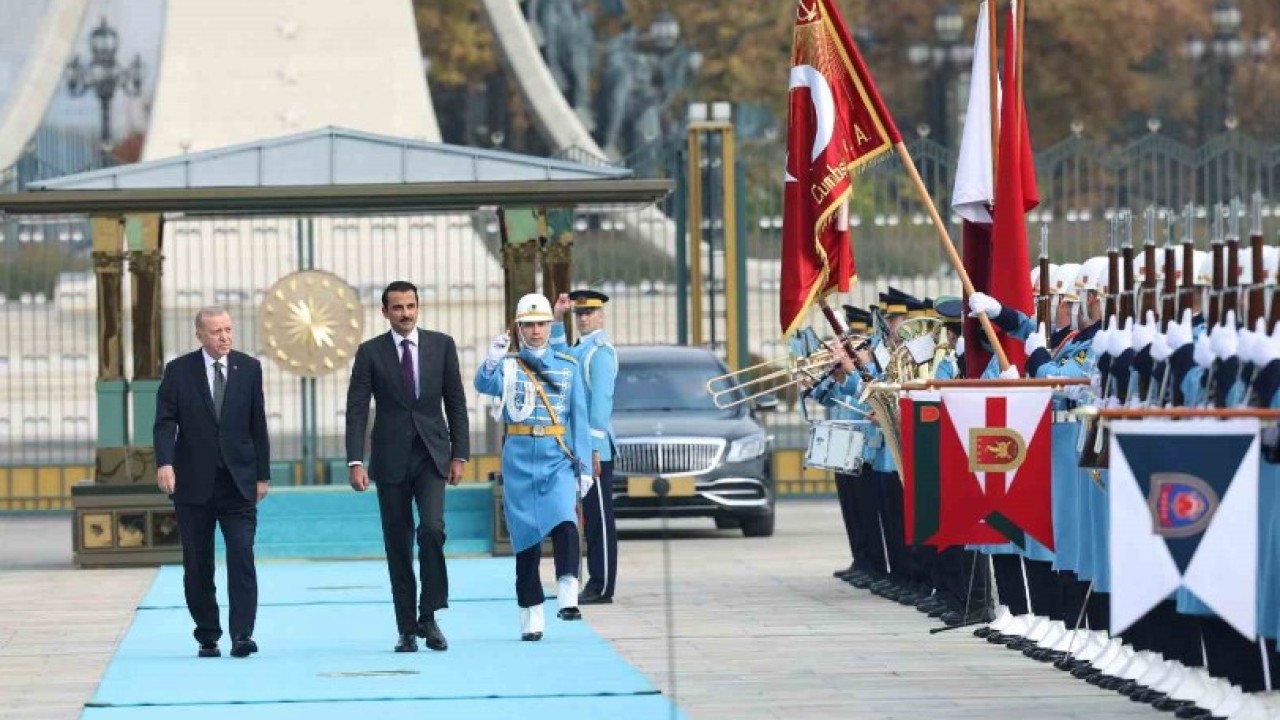 Cumhurbaşkanı Recep Tayyip Erdoğan, Katar Emiri Şeyh Temim Bin Hamad El Sani’yi resmi bir törenle karşıladı. El Sani’nin içinde bulunduğu makam aracını Cumhurbaşkanlığı Külliyesi önündeki caddede karşılayan süvariler, protokol kapısına kadar eşlik etti. Erdoğan, El Sani’yi Cumhurbaşkanlığı Külliyesi ana girişinde karşıladı. Tören alanındaki yerlerini almalarının ardından 21 pare top atışı eşliğinde iki ülkenin milli marşları çalındı. El Sani, Muhafız Alayı Tören Kıtası’nı "Merhaba asker" diyerek selamladı. Törende, tarihte kurulan 16 Türk devletini temsil eden bayraklar ve askerler de hazır bulundu.