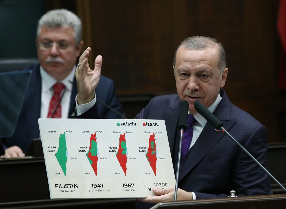 Türkiye olarak bu planı hemen reddettik. Tepkimizi ortaya koyduk. Mahmud Abbas ile telefonda, Hamas lideri İsmail Haniyye ile İstanbul’da konuşarak desteğimizi gösterdik. ABD gerek şahsıma gerekse istihbarat başkanıma karşı da tehditler sallıyor. Bazı finans kuruluşlarına yönelik de tehditler yapıyor. Ne yaparsanız yapın bunu kesinlikle başaramayacaksınız. Çok büyük paraları, çok büyük silahları, nükleer silahları da olabilir. Ama biz şunu biliyoruz nice az inanmış toplulukları inanmış kalabalıkların üzerine galip kıldık diyor kutsal değer. Plan karşısında ikircikli tutum izleyen bazı ülkeleri, kamuoylarından gelen tepkiler sonrasında tavır değiştirdiklerini görüyoruz. Kudüs üç semavi dinin de kutsal bir şehridir. Bunu dikkate almayan hiçbir planın başarı şansı yoktur. Bölgemizde ve Kudüs’te barış her kesimden ahlaklı ve dürüst insanların çabasıyla gerçekleşebilecektir. 1967 temelinde başkenti Doğu Kudüs olan bağımsız bir Filistin devletini savunmaya devam edeceğiz.