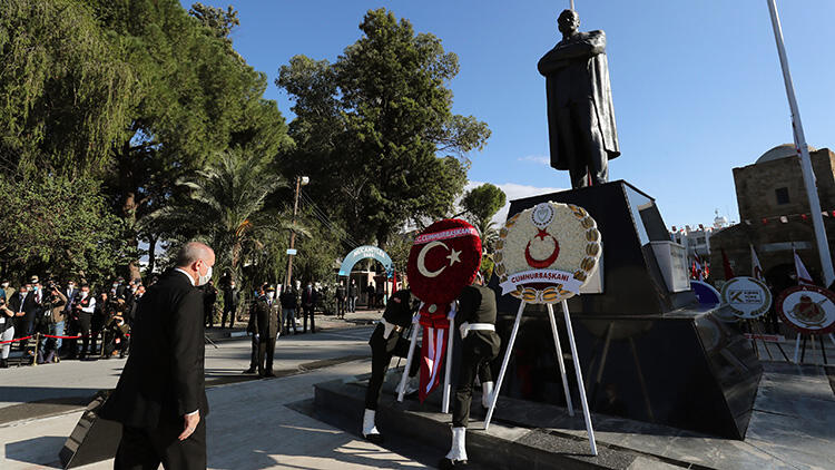 Erdoğan, Kuzey Kıbrıs Türk Cumhuriyeti'nin (KKTC) 37. kuruluş yıl dönümü dolayısıyla Dr. Fazıl Küçük Bulvarı'nda gerçekleştirilen geçit töreninde yaptığı konuşmada, KKTC Cumhurbaşkanı Ersin Tatar'ı ve KKTC hükümetini 46 yıldır kapalı olan Maraş'ın kullanıma açılması yönünde aldıkları cesur karardan dolayı şahsı ve milletin adına tebrik etti.