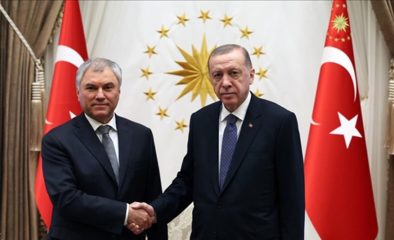 Cumhurbaşkanı Recep Tayyip Erdoğan, Rusya Federasyonu Federal Meclisi Devlet Duması Başkanı Vyacheslav Volodin'i kabul etti.