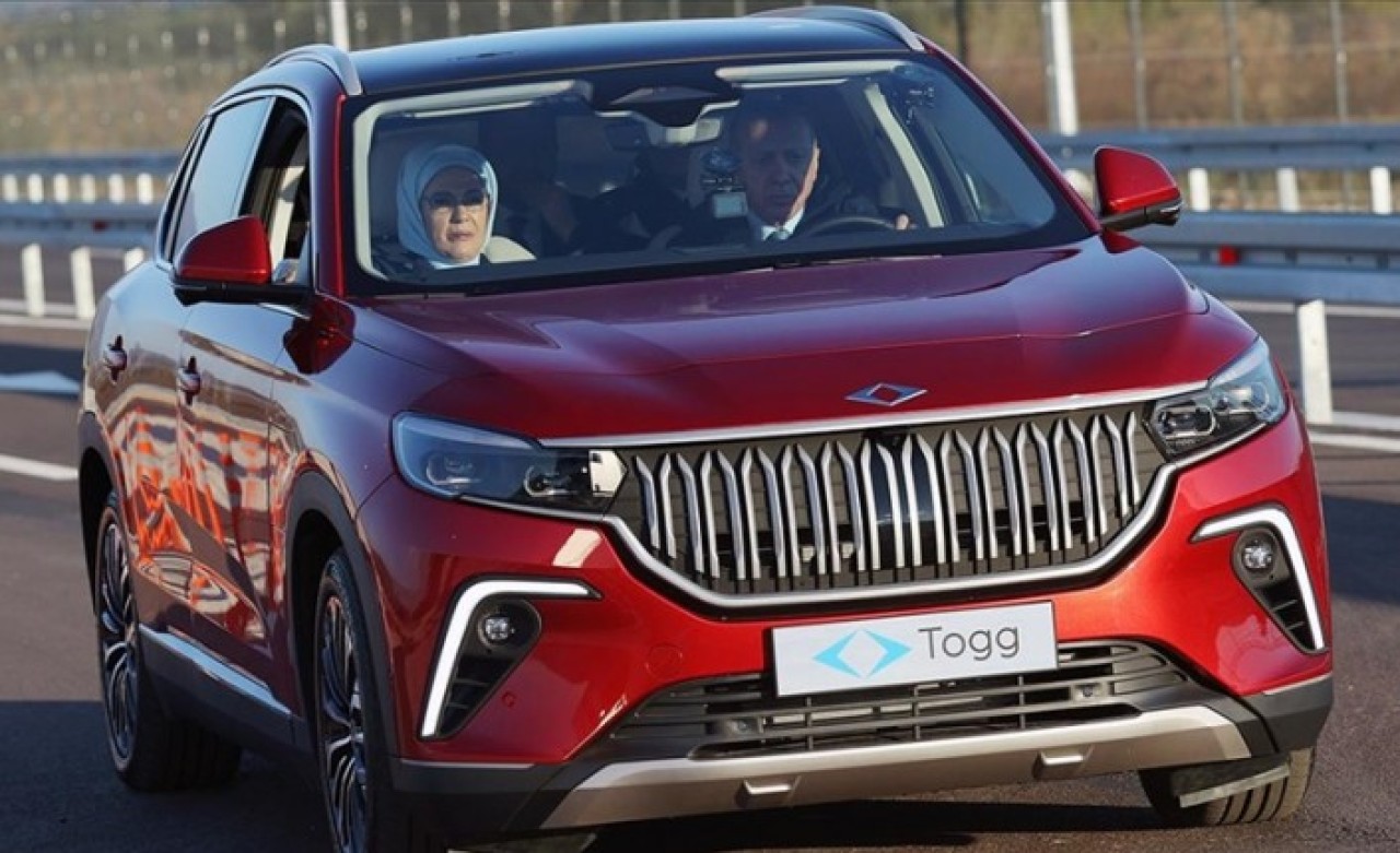 Togg logolu montlar giyen Cumhurbaşkanı Erdoğan ile eşi Emine Erdoğan, sonrasında Togg aracını test etti.