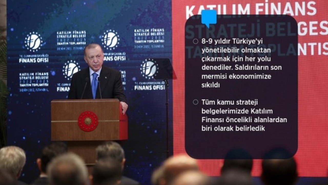 Cumhurbaşkanı Erdoğan Dolmabahçe Ofisi'nde düzenlenen Katılım Finans Strateji Belgesi Tanıtım Toplantısı'nda konuştu.