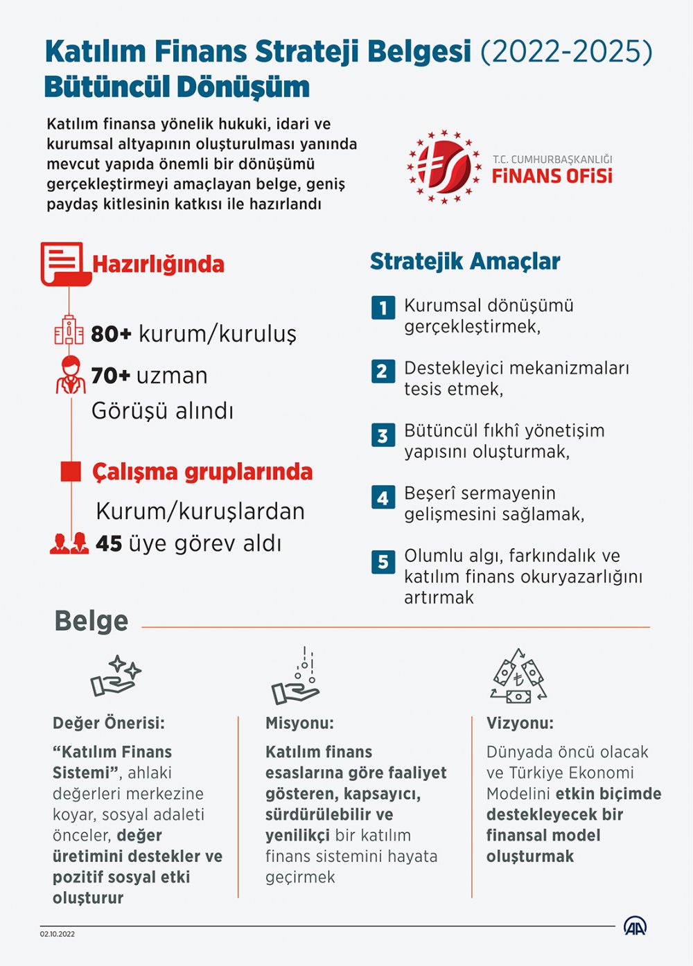 Bugün burada kamuoyu ile paylaşılacak Katılım Finans Strateji Belgesinin hayırlara vesile olmasını diliyorum. Türkiye'nin her alanda olduğu gibi ekonomide de hedeflerini küresel ligin en üst sıralarına çıkarmak için böyle bir süreçte bu tür çalışmaların çok daha anlamlı olduğuna inanıyorum.
