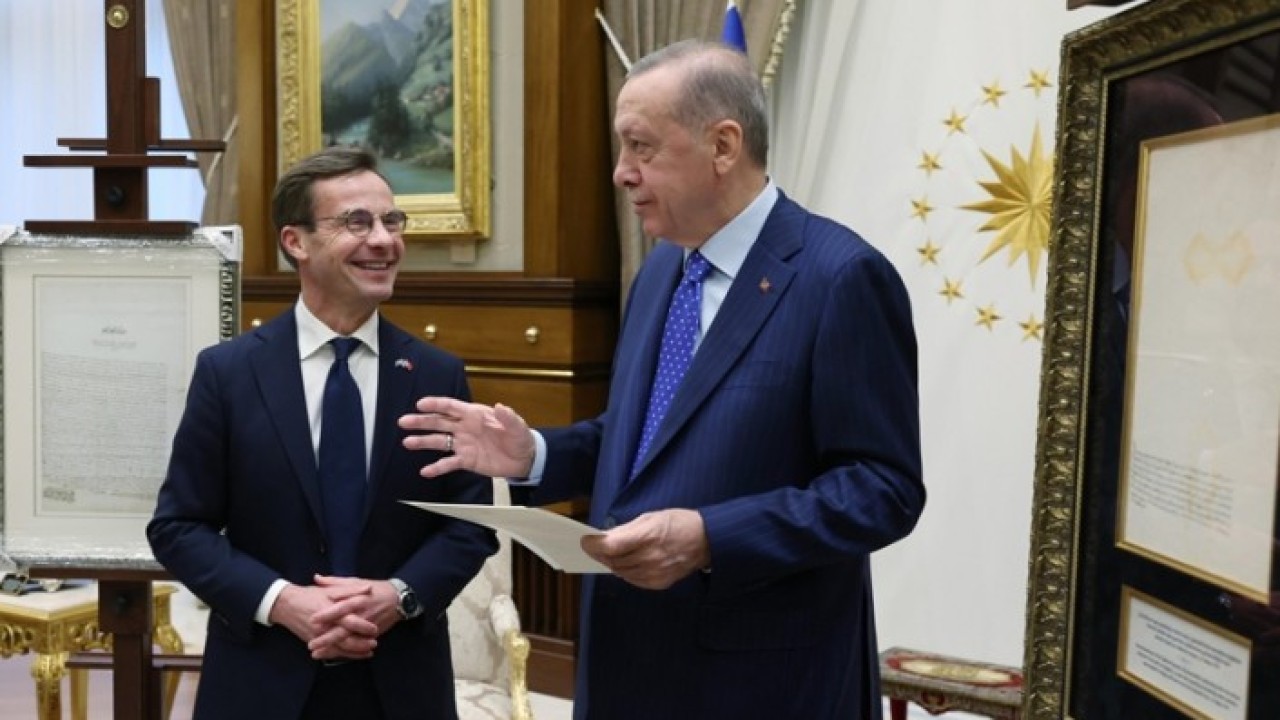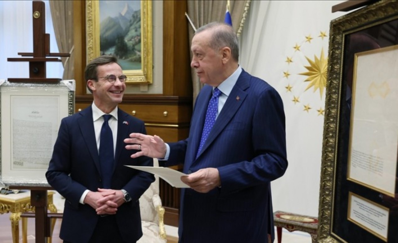 Ziyaretin anısına İsveç Başbakanı Kristersson, Cumhurbaşkanı Erdoğan'a 1739'da imzalanmış bir savunma-müttefiklik ahitnamesinin birebir basımını hediye etti.