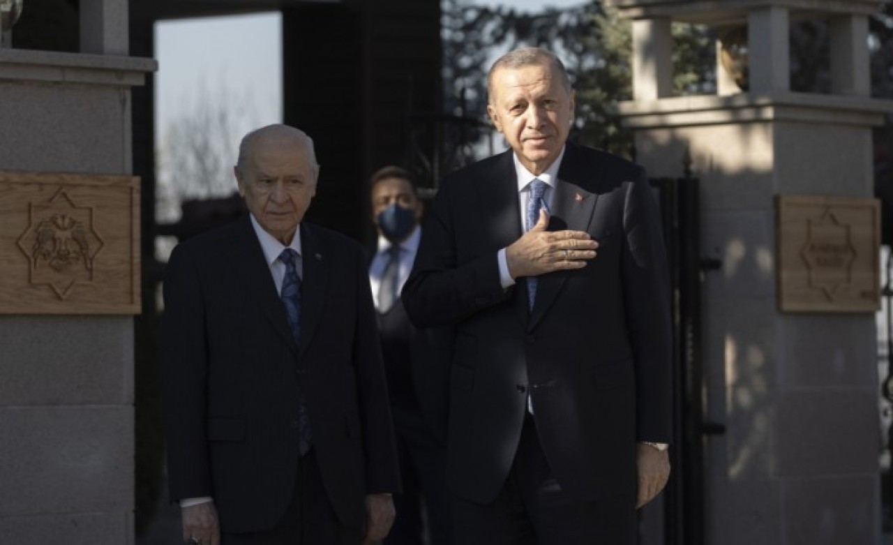 Cumhurbaşkanı Recep Tayyip Erdoğan, bugün MHP Genel Başkanı Devlet Bahçeli'yi Ankara'daki evinde ziyaret etti. Saat 14.00'te başlayan görüşme, Bahçeli'nin Erdoğan'ı kapıda karşılaması ile başladı. İki lider selamlaştıktan sonra kapıda kendilerini bekleyen gazetecilere poz verdi. Daha sonra konuta geçtiler.