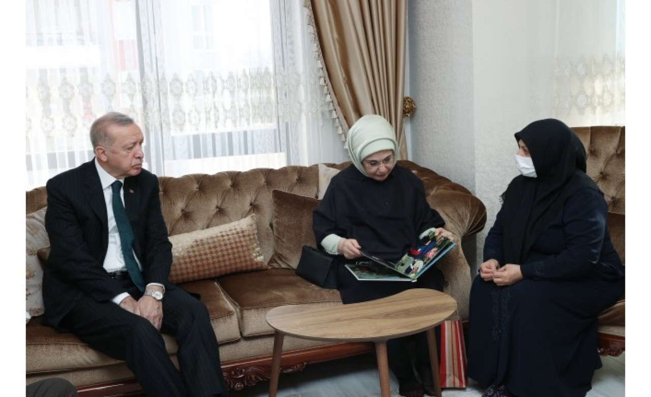 Aile ve Sosyal Hizmetler Bakanı Derya Yanık'ın eşlik ettiği Erdoğan ve eşi Emine Erdoğan, baba Avni Cengiz, anne Beyhan Cengiz ve ailenin yakınlarına başsağlığı ve sabır dileklerini iletti.