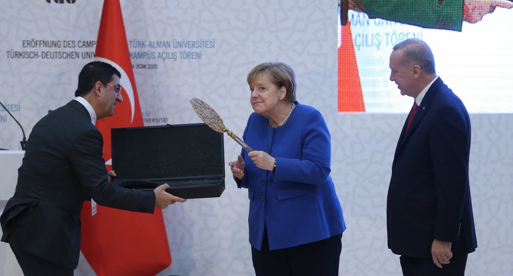 Almanya Şansölyesi Angela Merkel ve Cumhurbaşkanı Recep Tayyip Erdoğan, Türk-Alman Üniversitesi'nin yeni bina açılışı için bir araya geldi.
