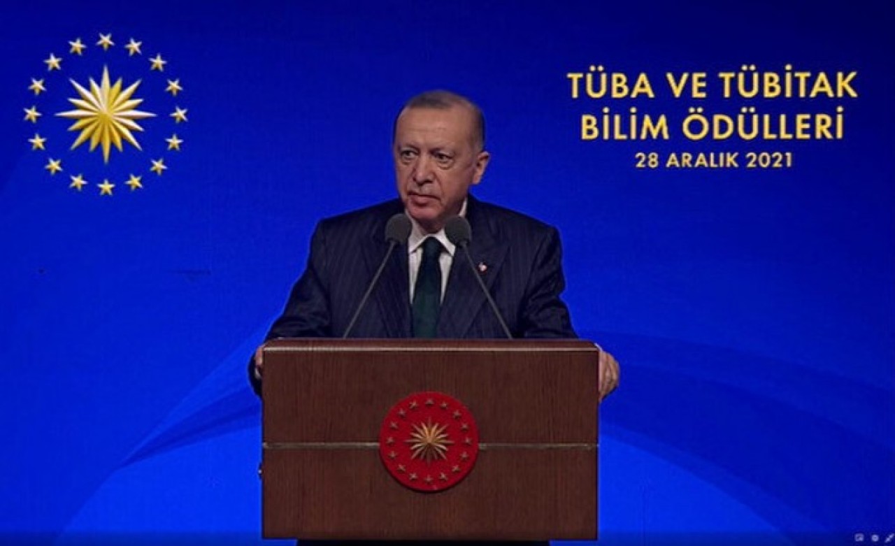 Türkiye'de bilim denildiğinde ilk akla gelen kurumların başında Türkiye Bilimler Akademisi'nin olduğunu ve TÜBA'nın yayımladığı her eserin ve her bilimsel etkinliğinin bilim hayatına önemli katkı sağladığını dile getiren Erdoğan, "Türk-İslam Bilim ve Kültür Mirası Projesi bunlardan biridir. Bu kapsamda 2021 yılında 12 eser basıldı. Yazımında önemli mesafe alınan Bilim Terimleri Sözlüğü de titizlikle üzerinde durduğumuz bir diğer önemli eserdir. Bu sözlük, bilimin kendi dilimizde üretilmesine ciddi katkı sağlayacaktır." sözlerini sarf etti.