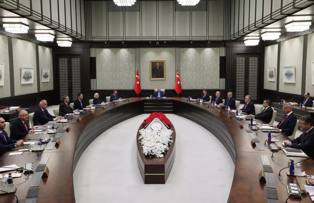 Cumhurbaşkanlığı Kabinesi, Cumhurbaşkanı Recep Tayyip Erdoğan başkanlığında Cumhurbaşkanlığı Külliyesi'nde toplandı. Saat 16.40’ta başlayan toplantıda, Türkiye’nin iç ve dış politika gündemini doğrudan ilgilendiren kritik başlıklar ele alınıyor.