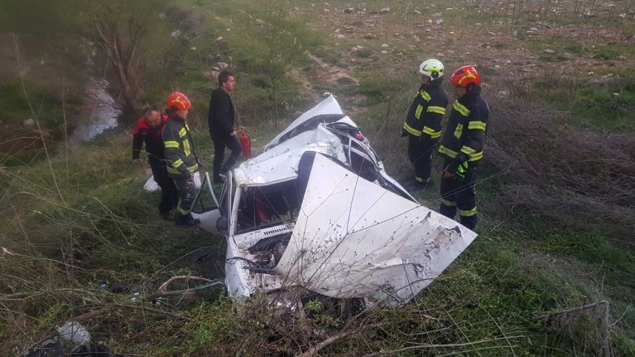 Çarpışmanın etkisiyle her iki araç da şarampole devrildi.