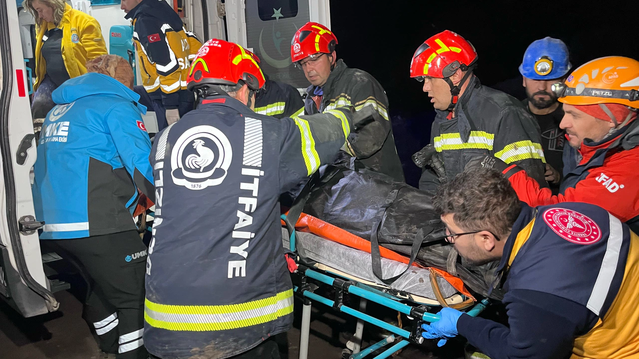 Göçük nedeniyle 3 kişinin mahsur kaldığını değerlendiren ekipler, arama kurtarma çalışması başlattı.