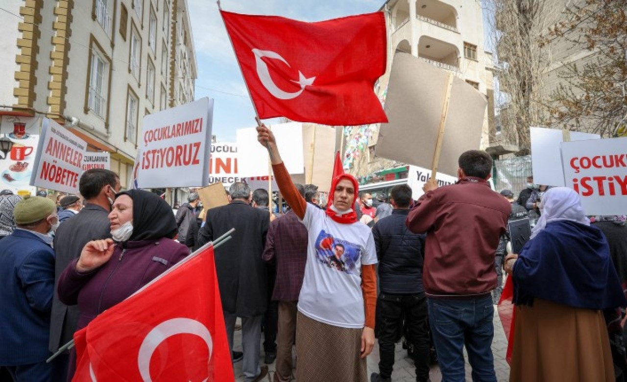 Oğlu için eyleme katılan Diyarbakırlı Ayşegül Biçer de "Evladımı PKK ve uzantısı HDP'den almadan bu davadan vazgeçmeyeceğiz. Buradan herkese sesleniyoruz, annelere ses verin. Bitirirse PKK'yı anneler bitirir." diye konuştu.