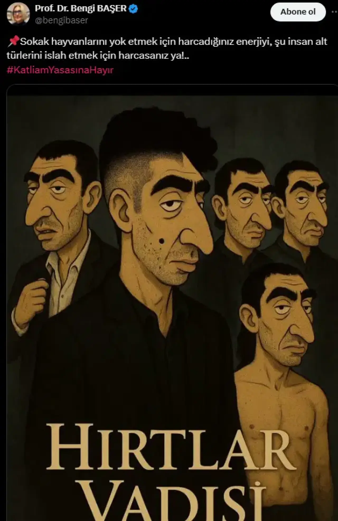 Karara sosyal medyada tepki gösteren Prof. Dr. Bengi Başer, X hesabından yaptığı paylaşımda şu ifadeleri kullandı: “Sokak hayvanlarını yok etmek için harcadığınız enerjiyi, şu insan alt türlerini ıslah etmek için harcasanız ya!..”