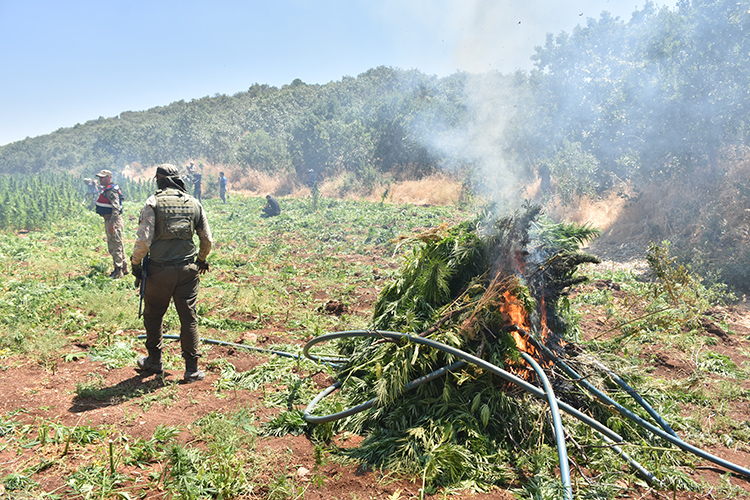İl Jandarma Komutanlığı ekiplerince Lice kırsalında dün başlatılan, jandarma komando timleri ve güvenlik korucularının katılımıyla yürütülen "Şehit Jandarma Binbaşı Ümit Çelik Operasyonu"nda, yasa dışı ekimi yapılan Hint kenevirleri tespit edilerek, imha ediliyor.