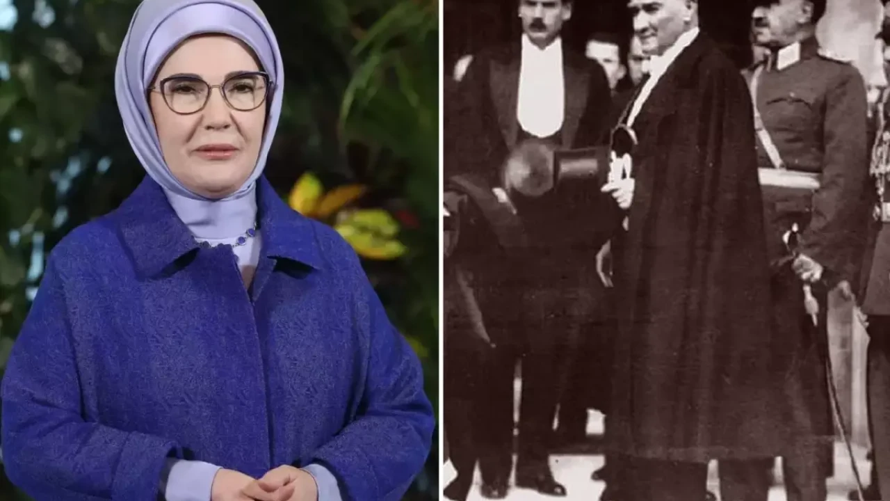 Cumhurbaşkanı Recep Tayyip Erdoğan'ın eşi Emine Erdoğan, Türkiye Cumhuriyeti'nin kurucusu Gazi Mustafa Kemal Atatürk'ün ebediyete irtihalinin 87. yıl dönümünde anlamlı bir anma mesajı yayımladı. Erdoğan’ın kullandığı ifade sosyal medyada büyük yankı uyandırdı.