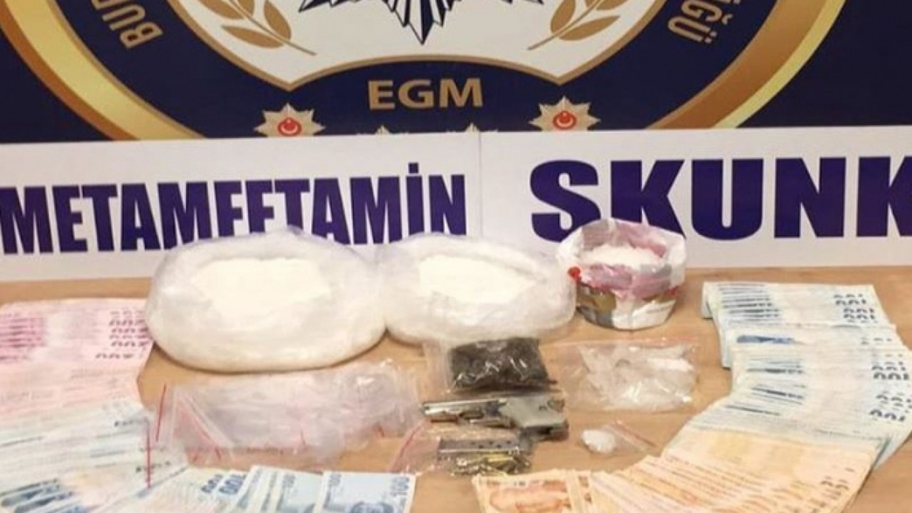 Ayrıca, 3 tabanca, 35 fişek, 2 hassas terazi ve 31 bin 885 lira ele geçirildi.