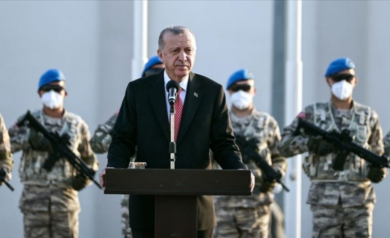 Erdoğan, "Ülkemizi ve milletimizi burada şerefle temsil eden siz kahraman askerlerimizi canı gönülden tebrik ediyorum. Bu vesileyle vatanımızın bağımsızlığı uğrunda gözlerini kırpmadan canlarını feda eden aziz şehitlerimizi rahmetle yad ediyor, gazilerimize şükranlarımı sunuyorum. Sınırlarımız içinde ve dışında devletimizin bekası, milletimizin güvenliği, dost ve kardeş ülkelerin huzuru için fedakarca görev yapan tüm emniyet güçlerimize Rabbimden muvaffakiyetler niyaz ediyorum. Rabbim sizi ve güvenlik güçlerimizin tamamını her türlü kazadan, beladan, saldırıdan muhafaza eylesin. Sizlere tüm Türkiye'deki ailelerinizin, sevdiklerinizin ve aziz milletimizin selamlarını, sevgilerini getirdim. 84 milyonun her bir ferdinin duası daima sizinledir, sizin yanınızdadır. Sizler milletimizin göz bebeğisiniz. Sizler hem vatandaşlarımızın hem de dostlarımızın güven kaynağısınız. Buradaki vazifenizi büyük bir disiplin ve fedakarlıkla yaptığınızı görüyor, bundan da büyük bir memnuniyet duyuyorum." diye konuştu.
