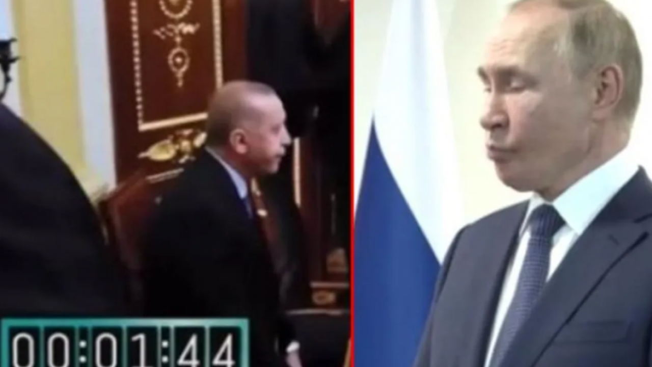 Toplantı saatinde kameraların karşısına geçen Putin, Erdoğan'ı beklemek zorunda kaldı ve garip bir durumda kaldı. Bu durum akıllara 2020 yılında Cumhurbaşkanı Erdoğan ve heyetinin Moskova'da yaşadığı krizi getirdi. O dönemde temaslarda bulunmak için Putin'le görüşmeye giden Erdoğan ve heyeti dakikalarca bekletmiş ve devlet televizyonu Erdoğan'ın sıkılmış halini çekerek ekranın altına da sayaç yerleştirmişti.