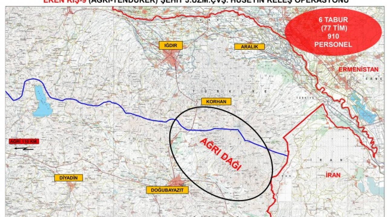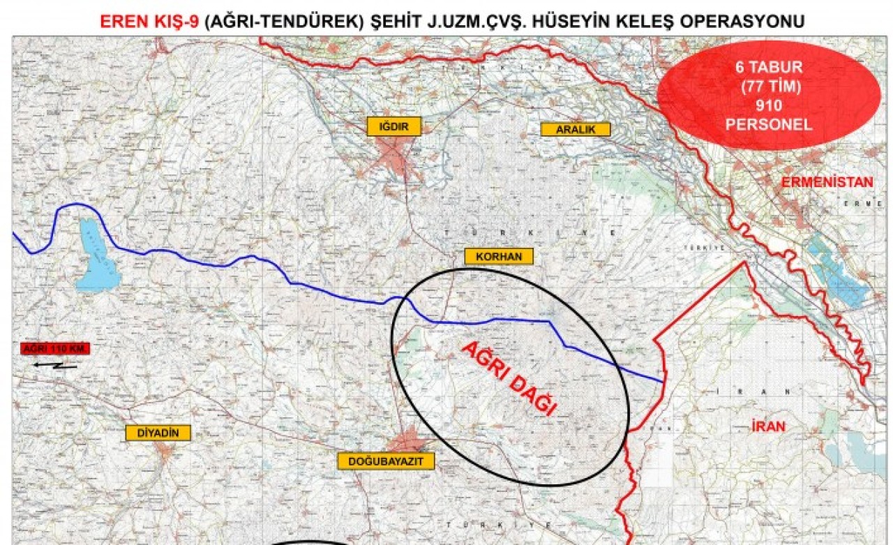Bakanlıktan yapılan açıklamaya göre, terör örgütü PKK'yı ülke gündeminden çıkarmak ve teröristleri etkisiz hale getirmek amacıyla, Ağrı ve Iğdır'da "Eren Kış-9 Şehit Jandarma Uzman Çavuş Hüseyin Keleş" operasyonu başlatıldı.