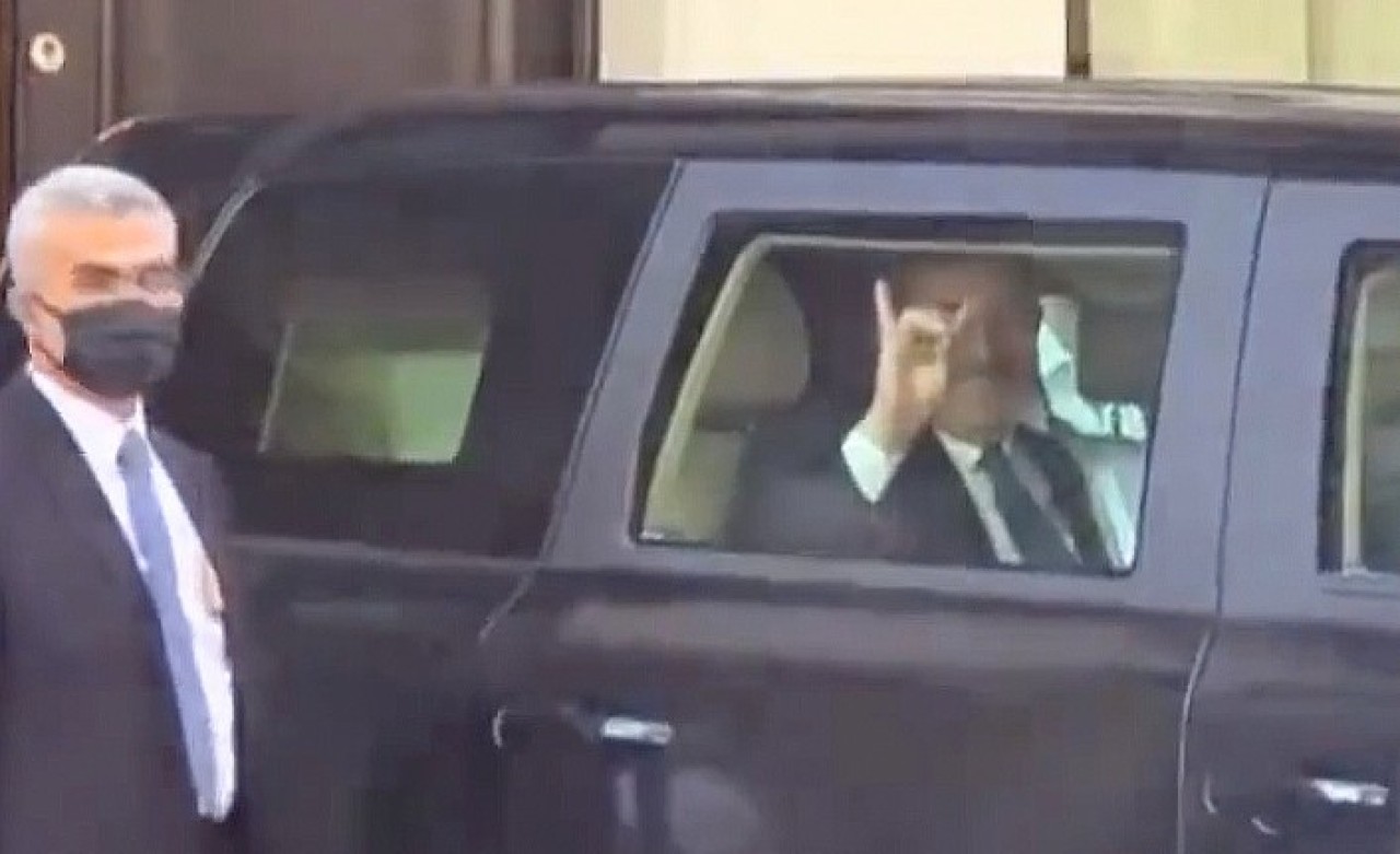 1915 olaylarının yıldönümü gerekçesiyle Ermenistan bayraklarıyla Çavuşoğlu'nu protesto eden gruba Çavuşoğlu, bozkurt işareti yaparak cevap verdi.