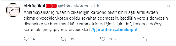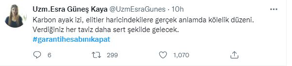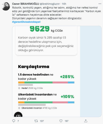 Binlerce kişi Garanti Bankası'nın reklam filmine tepki göstererek karbon ayak izinin ileriki zamanlarda çok tehlike boyutlara varacağını belirtti. İşte atılan twettlerden bazıları;