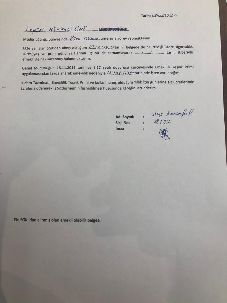 'İşten çıkarılmadı emekliliğini talep etti'