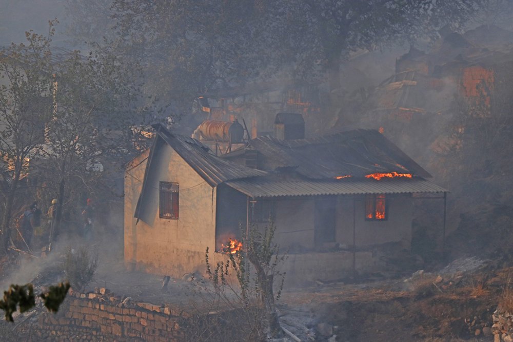 Muğla'nın Marmaris ilçesinin Armutalan Mahallesi'ndeki ormanlık alanda çıkan ve rüzgarın etkisiyle kısa sürede geniş bir alana yayılan yangın, Mezargediği mevkisindeki evlere sıçradı.