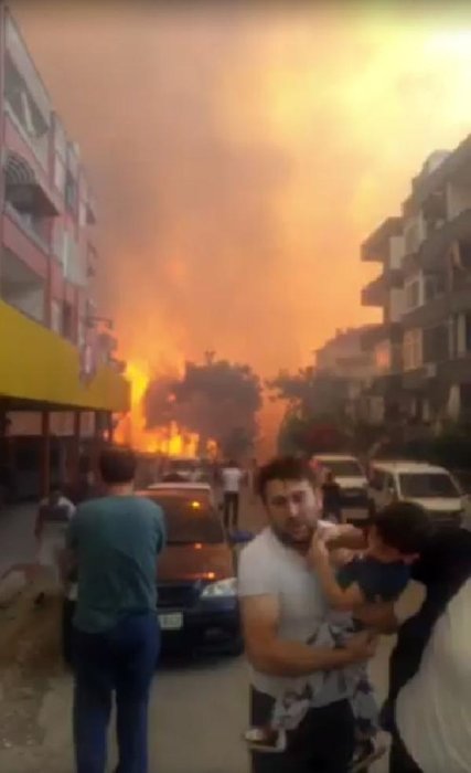 Yangının yerleşim yerlerinin bulunduğu alana yayılmasının ardından yanlarına çocuklarını da alan aileler, bölgeden kaçarak alevlerden uzaklaştı.