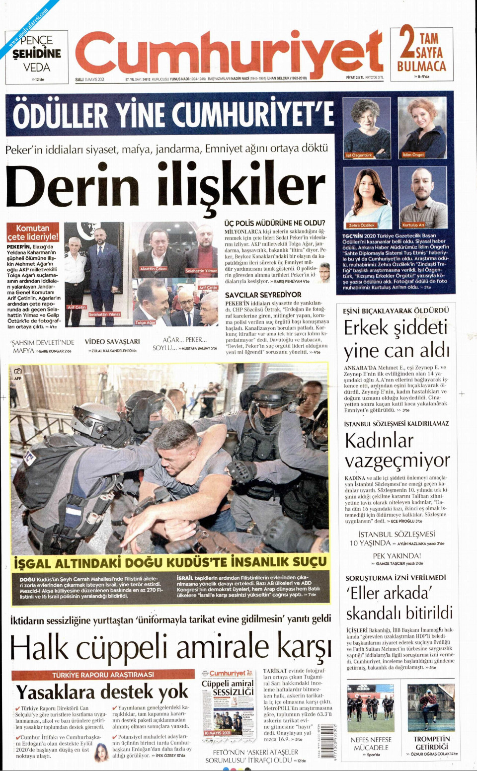 Cumhuriyet'in haberinde "Sedat Peker'in, Elazığ'da Yeldana Kaharman'ın şüpheli ölümüne ilişkin Mehmet Ağar'ın oğlu AKP milletvekili Tolga Ağar'ı suçlamasının ardından iddiaları yalanlayan Jandarma Genel Komutanı Arif Çetin'in, Ağarlar'ın ardından çete raporunda adı geçen Selahattin Yılmaz ve Galip Öztürk'le de fotoğrafı çıktı." ifadeleriyle Jandarma Genel Komutanı Arif Çetin'i hedef aldı.