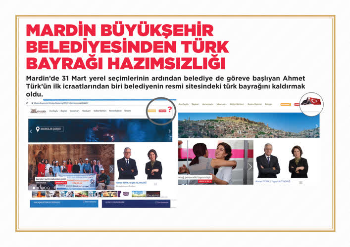Mardin'de 31 Mart yerel seçimlerinin ardından belediye başkanlığına seçilen Ahmet Türk'ün ilk icraatlarından biri de belediyenin resmi sitesindeki Türk bayrağını kaldırmak oldu.