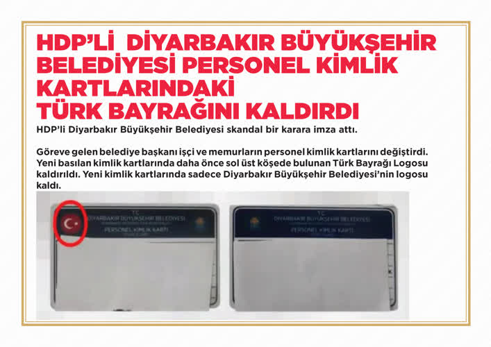 Diyarbakır Büyükşehir Belediye Başkanlığı görevine seçilen Adnan Selçuk Mızraklı, öncelikle işçi ve memurların personel kimlik kartlarını değiştirdi. Yeni basılan kimlik kartlarında daha önce sol üst köşede bulunan Türk bayrağı logosu kaldırıldı. Yeni kimlik kartlarında sadece Diyarbakır Büyükşehir Belediyesinin logosu kaldı.