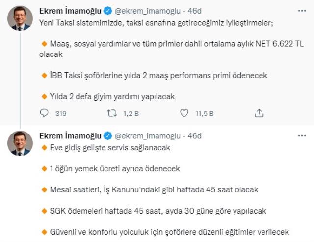 Geçtiğimiz günlerde "Taksi plakası ağalığı bitecek. Gözünüz bizde olsun" diyen İBB Başkanı İmamoğlu'nun açıkladığı 8 maddelik yeni sistemde taksi esnafına aylık net maaş olarak 6 bin 622 lira verileceğini belirtti.