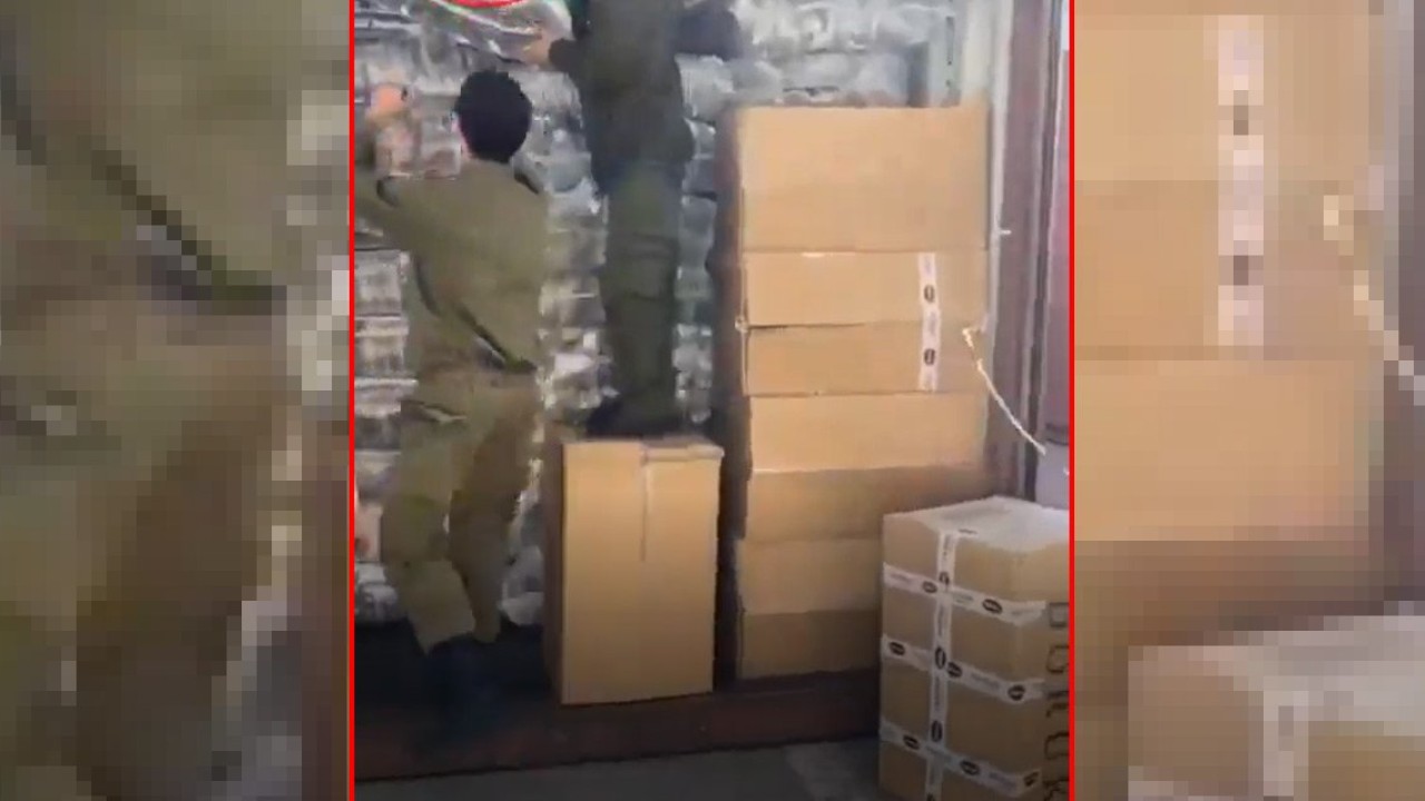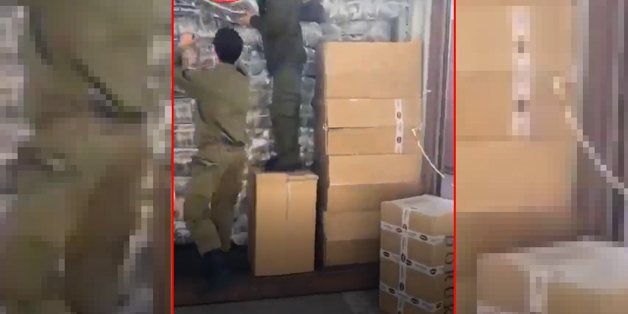 Hadashot Bazman tarafından paylaşıldığı öğrenilen videoda İsrail ordusunun Karmel kulesi üssüne Türkiye'den konteyner dolusu kıyafet gönderildiği görülüyor.