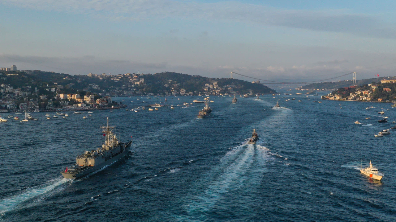 "Nizam Cumhuriyet" olarak ifade edilen düzenin alınmasının ardından gemiler, resmigeçit için saat 17.00'de İstanbul Boğazı'na güney istikametinden girdi.
