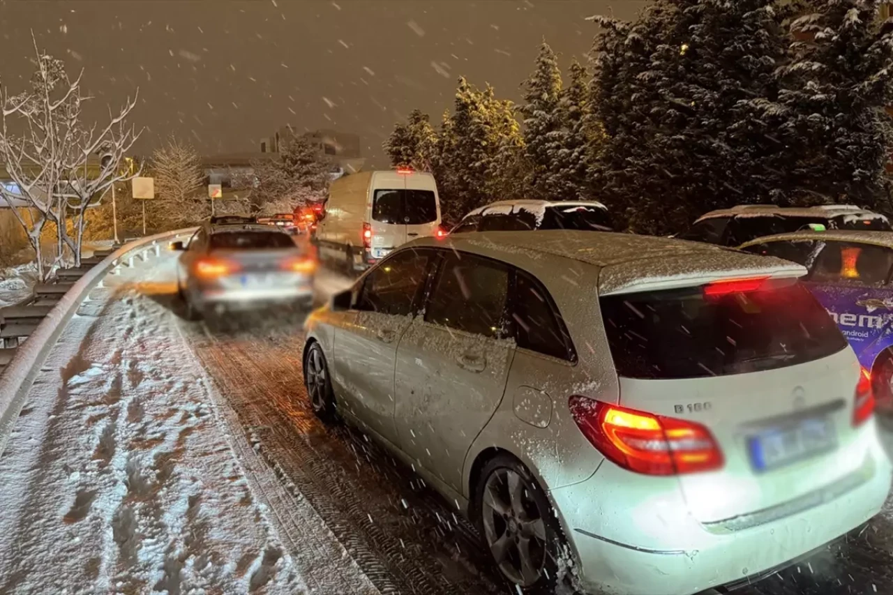 Sarıyer’de Büyükdere Caddesi başta olmak üzere birçok noktada araçların kar nedeniyle ilerlemekte güçlük çektiği görüldü. Bazı araçlar kayarak ilerlerken, bölgede kısa sürede trafik yoğunluğu oluştu.