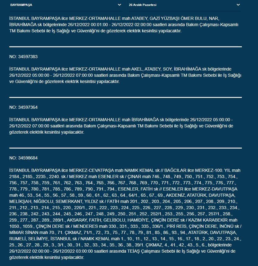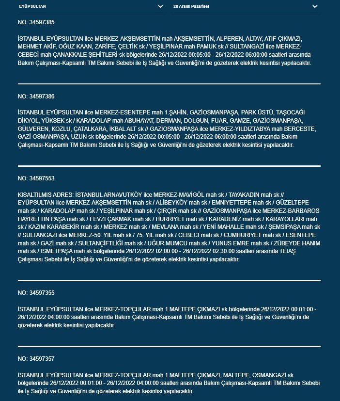 BEDAŞ’tan İstanbullulara elektrik kesintisi uyarısı geldi.