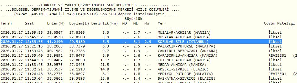 Merkez üssünün Şile olarak açıklandığı sarsıntı yerin 5.5 kilometre derinliğinde gerçekleşti.