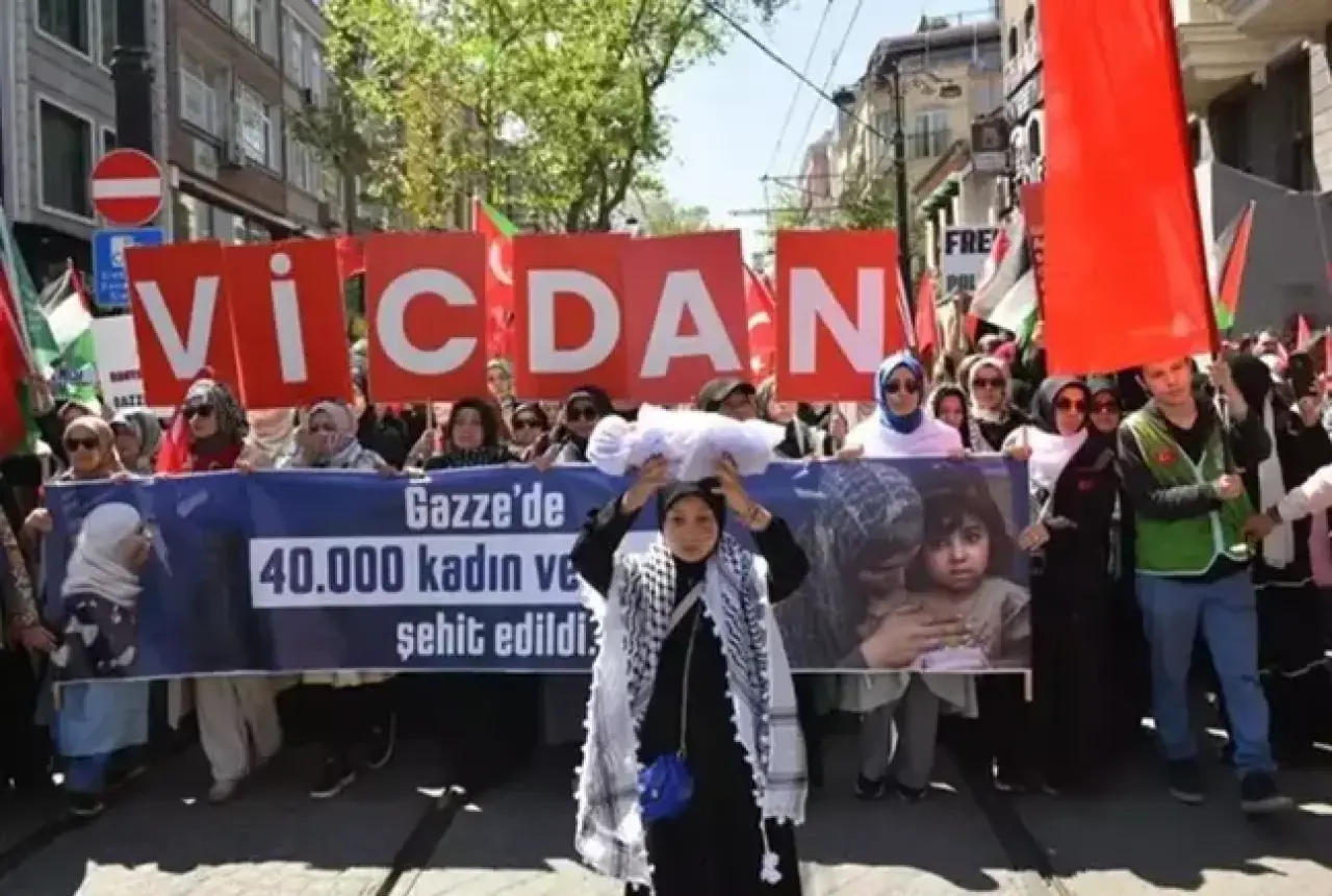 Yürüyüşün en dikkat çeken detayı, en ön safta yer alan kadın grubunun taşıdığı “Gazze’de 40 bin kadın ve çocuk şehit edildi” yazılı pankart oldu. Anneler Günü kapsamında düzenlenen yürüyüşte, Gazze’de hayatını kaybeden anneler ve çocuklar için duygusal anlar yaşandı.