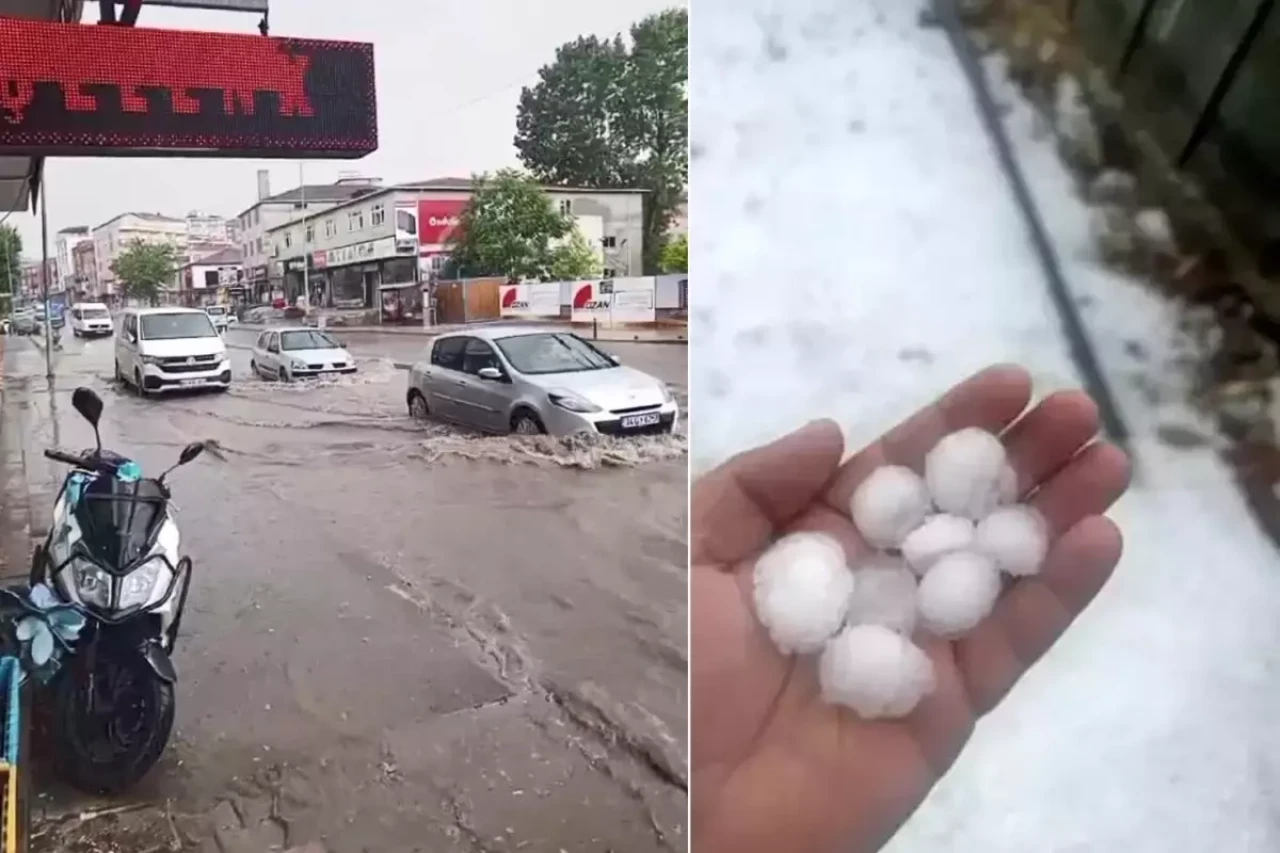 Sancaktepe'de aniden bastıran dolu kısa sürede yerini sağanak yağmura bıraktı. Hazırlıksız yakalananlar korunaklı alanlara sığınırken, yolların suyla kaplanması ulaşımı aksattı.
