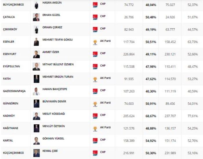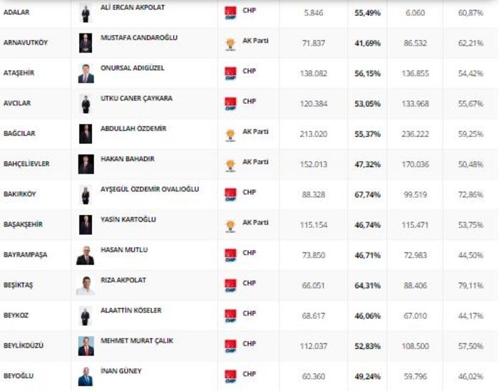 Yerel seçimlerde İstanbul'un 39 ilçesinde kim kazandı? İşte sonuçlar.