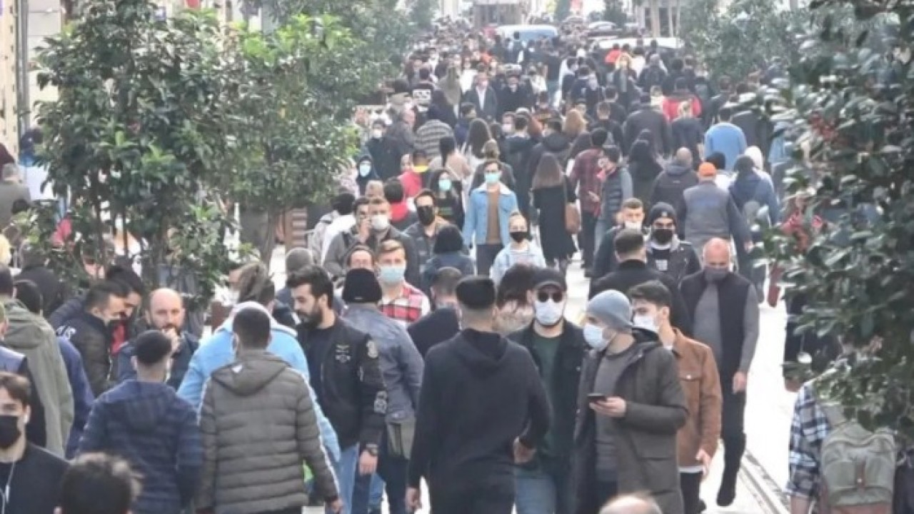 İstiklal Caddesi'ndeki kalabalık ve maskesiz gezenler görüntülendi.