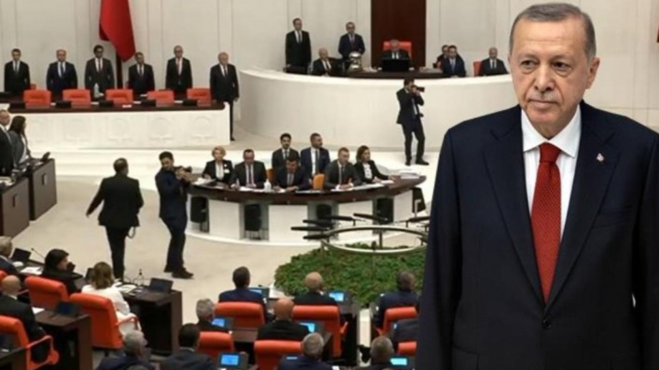 Cumhurbaşkanı Erdoğan'ın Genel Kurul'a girmesiyle AK Parti, MHP ve İYİ Parti sıraları Devlet Başkanı'na saygı gereği ayağa kalktı. Erdoğan'ın salona girişi CHP sıralarını hareketlendirmedi. CHP'li vekiller İstiklal Marşı anonsu gelene kadar yerlerinden kalkmadı.