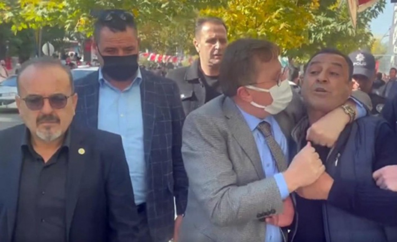 Akşener'in esnaf ziyareti sırasında şehit yakını olduğunu iddia eden bir kişi, İYİ Parti'nin HDP ile yakın ilişki kurduğunu savunarak tepkisini dile getirdi. Bunun üzerine polis ekiplerinin bölgeden uzaklaştırmaya çalıştığı kişinin yanına giden İYİ Parti Grup Başkanvekili Lütfü Türkkan, bir süre dinlediği bu kişiye küfretti.