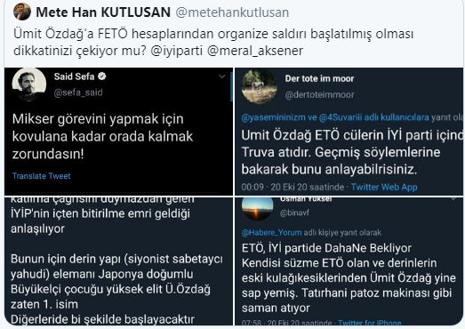 Yİ Parti İstanbul Milletvekili Ümit Özdağ, bazı mesajlarda 'ETÖ'cü (Ergenekon Terör Örgütü) olmakla' suçlandığını açıkladı.