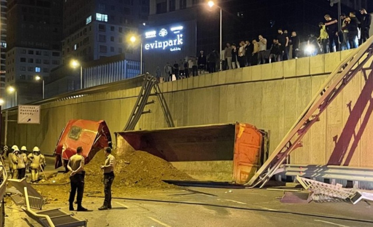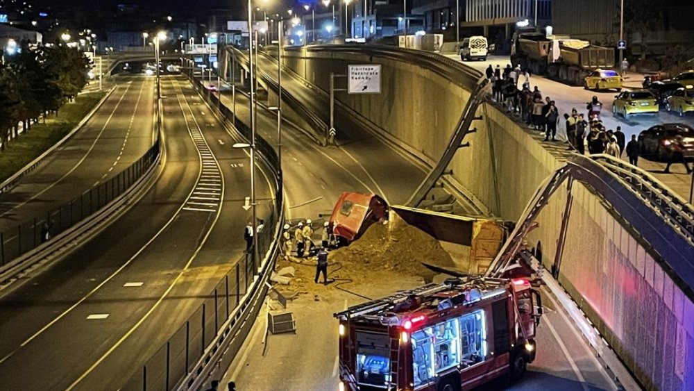 İstanbul 1. Çevreyolu Fikirtepe mevkii Yıldırım Sokak üzerinde, Celal Ekşioğlu idaresinde ilerleyen kamyon yaklaşık 5 metre yükseklikten çevre yoluna düştü.