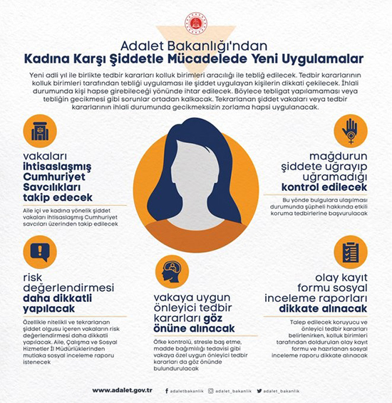 Adalet Bakanlığı, kadına yönelik şiddetle daha etkin mücadele edilebilmesi için adli yılın başlaması ile birlikte yeni uygulamaları hayata geçiriyor.
